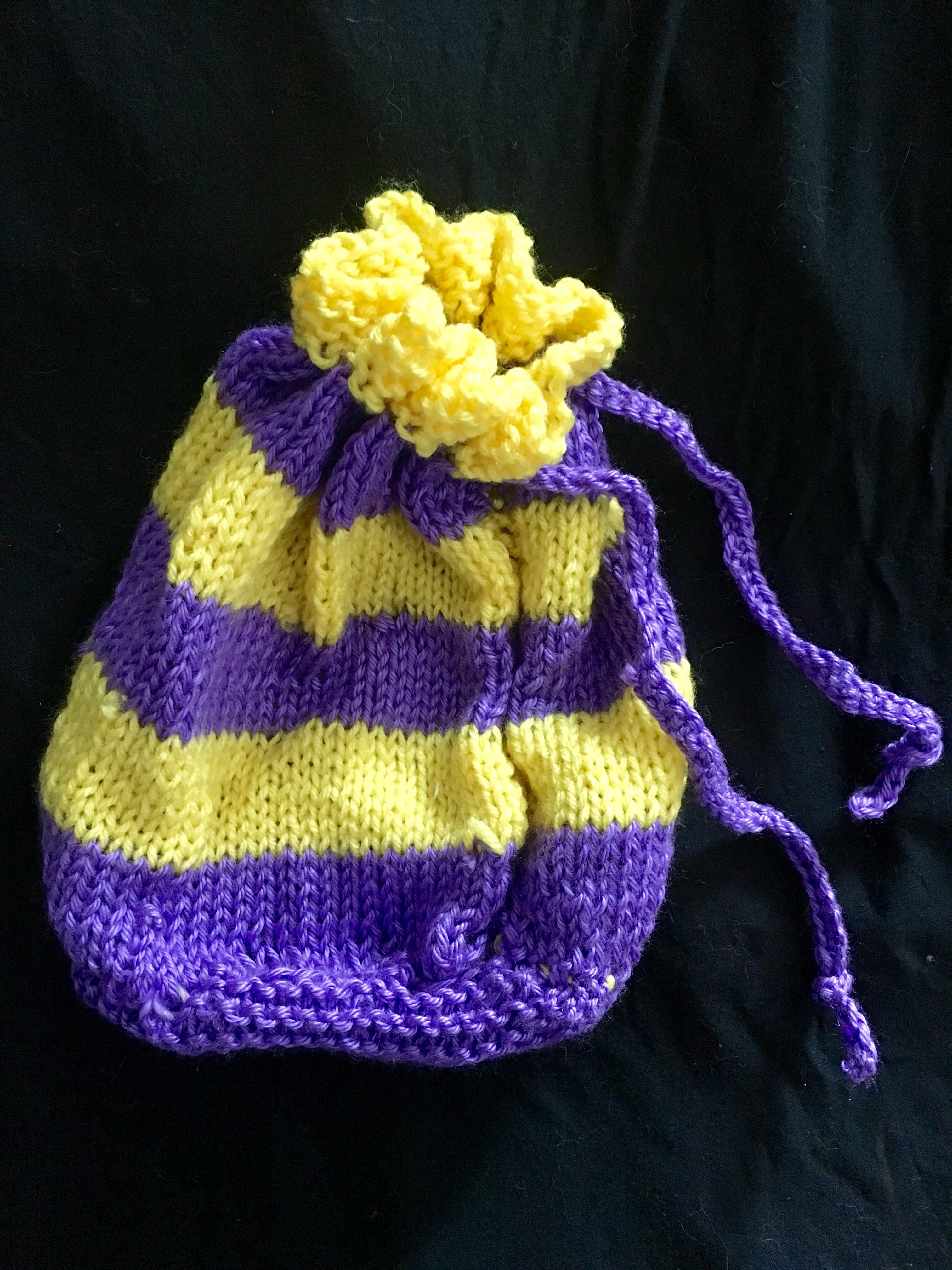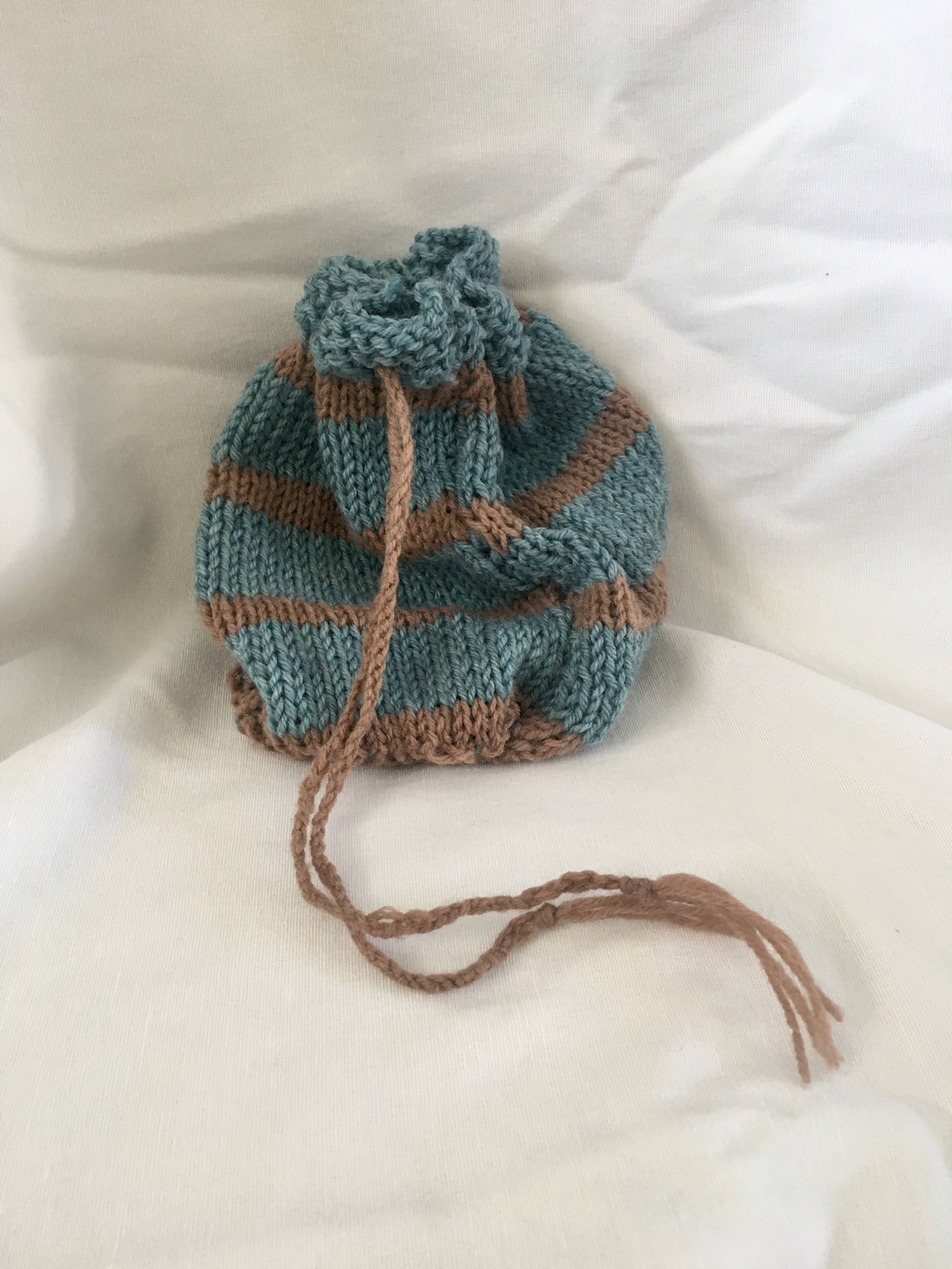 Whether for your wallet, make up or even DnD dice, you don't want to leave home without a custom knitted drawstring bag! Yarn type used will vary on the design